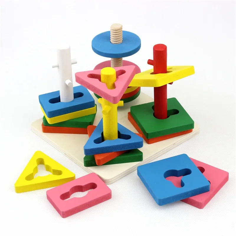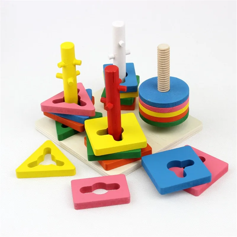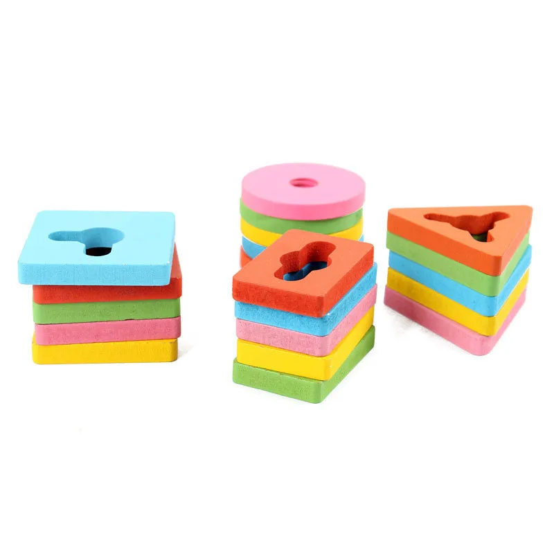 Geometric Assembling Blocks Montessori Intelligence Classic Baby Toys Wooden Color Peg Shapes Match