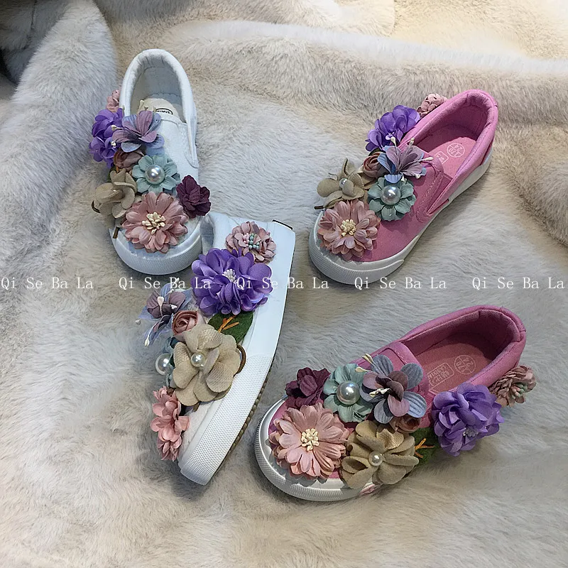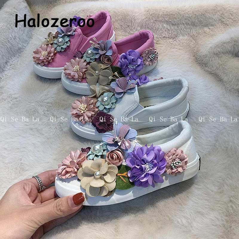 New Autumn Kids Casual Sneakers Baby Girls Flower Canvas Shoes Children Slip On Sport Sneakers Todd