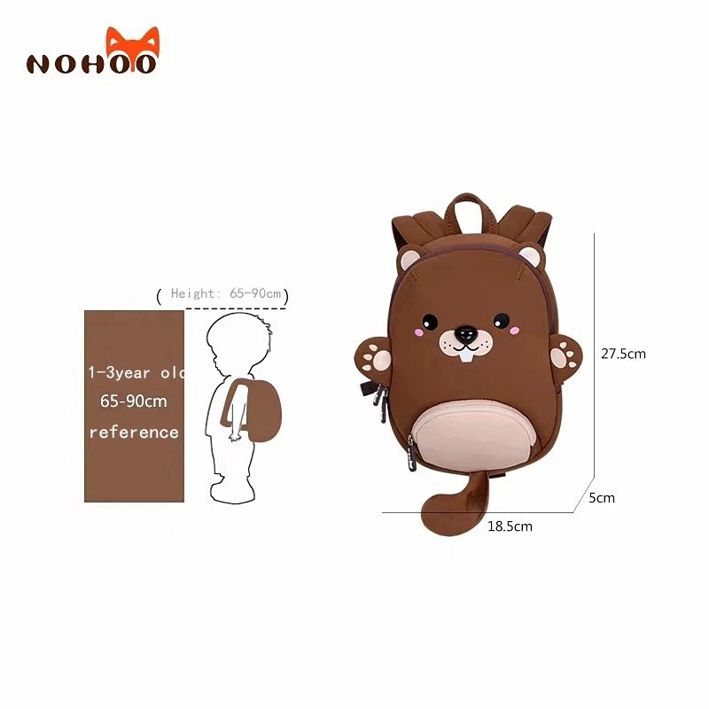 BEST QUALITY NOHOO mochila 3D kids Bag Cartoon Animal kindergarten Baby 1-3 year old Backpack waterproof travel