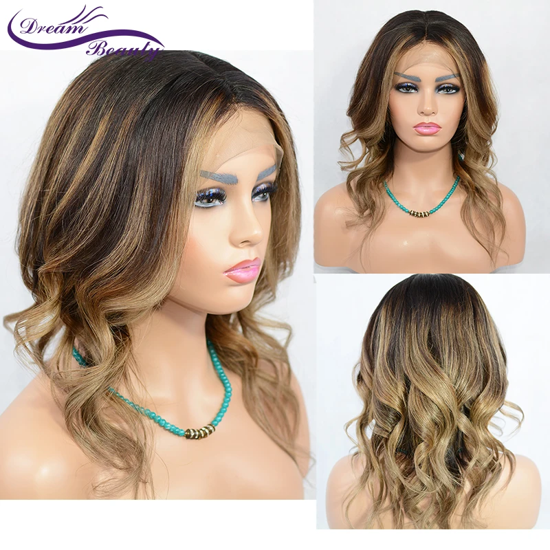 Lace Front Human Hair Wig 13x6 Deep Part Ombre Highlights Color Pre Plucked With Baby Hair Brazilia