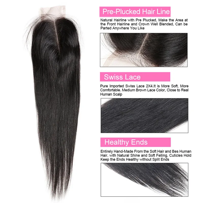 HIGH QUALITY Lolly Hair Brazilian Straight Lace Closure With Baby Hair Swiss Lace Middle Part 2X4 Remy Human Hai